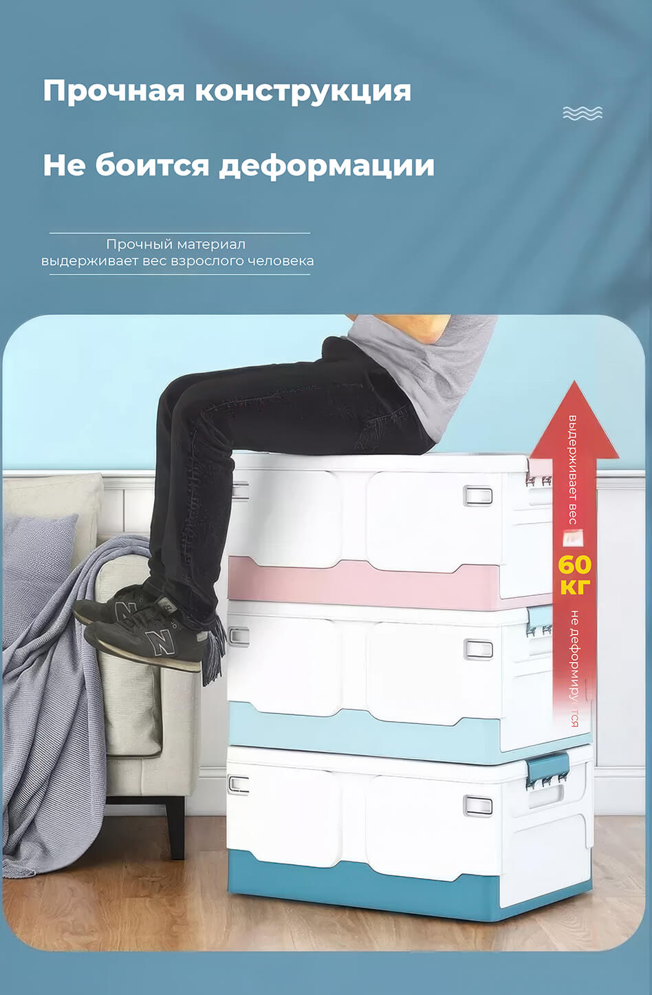 Пластиковая коробка с крышкой защищает содержимое от пыли и влаги, а прочная конструкция гарантирует надежность и долговечность. Складной контейнер легко складывается, экономя место, когда не используется, а удобные ручки обеспечивают комфортную переноску.