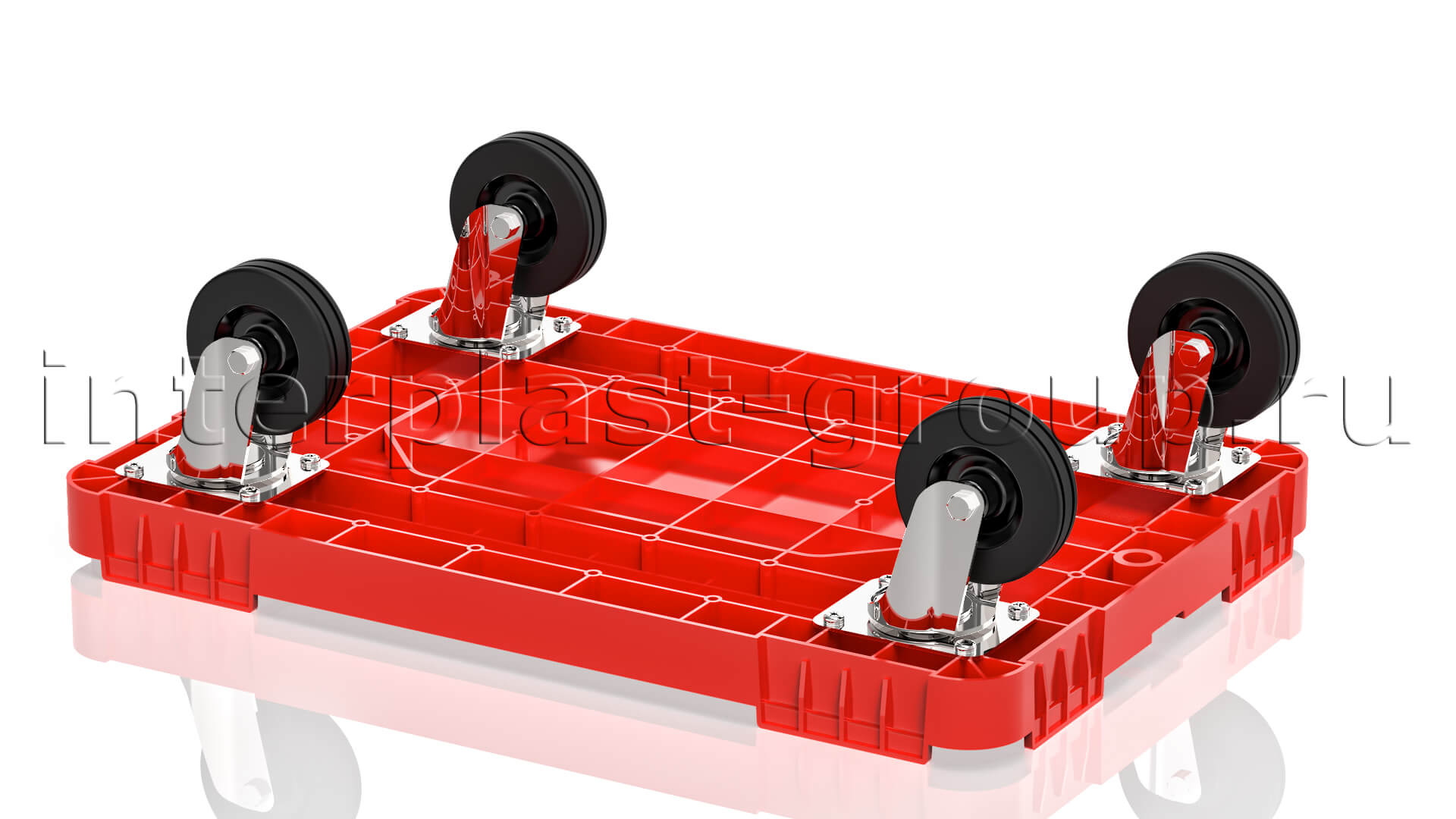 Тележка пластиковая сплошная без тормозов красная в Архангельске