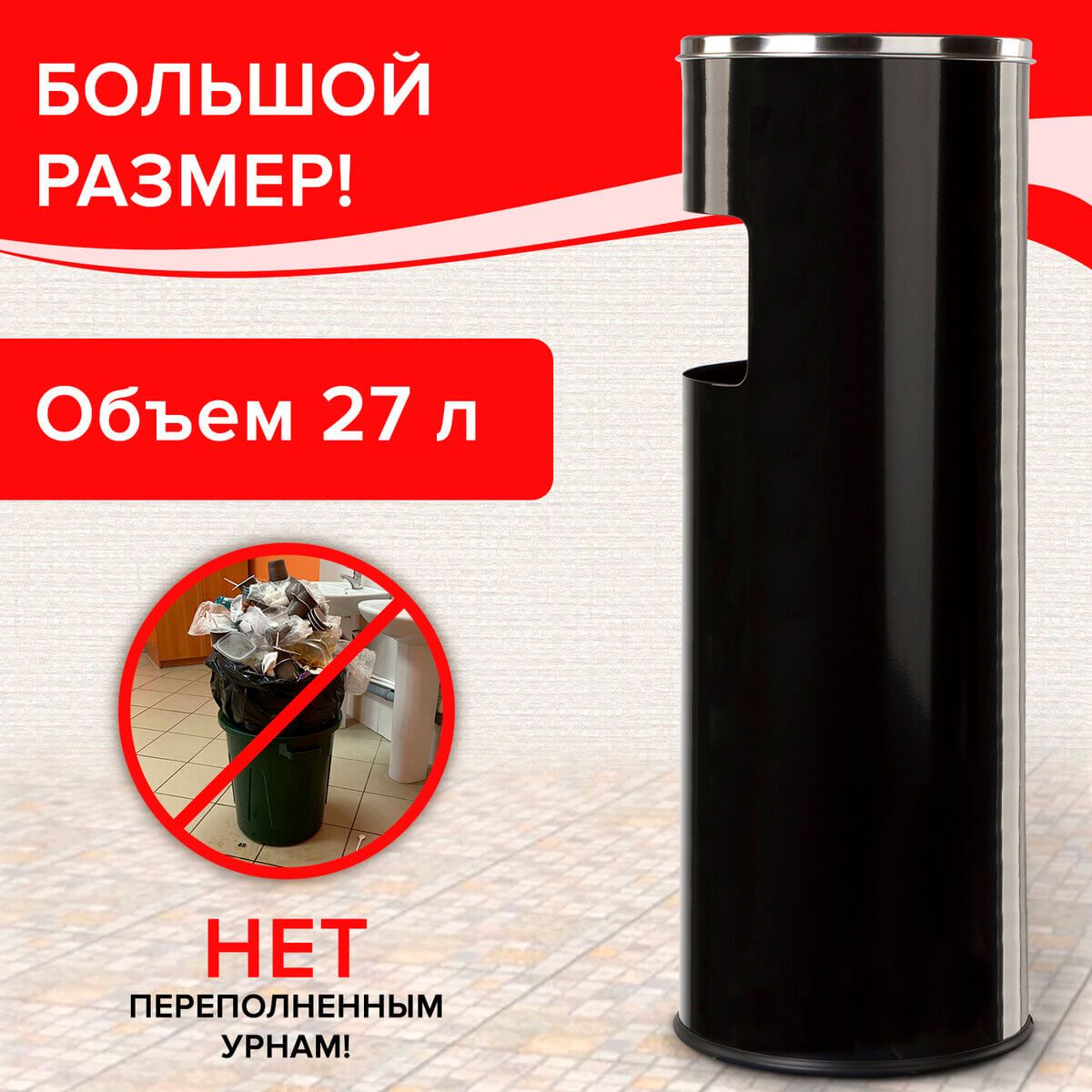 Урна с пепельницей 27 л, нержавеющая сталь, черная, LAIMA PROFESSIONAL в Архангельске